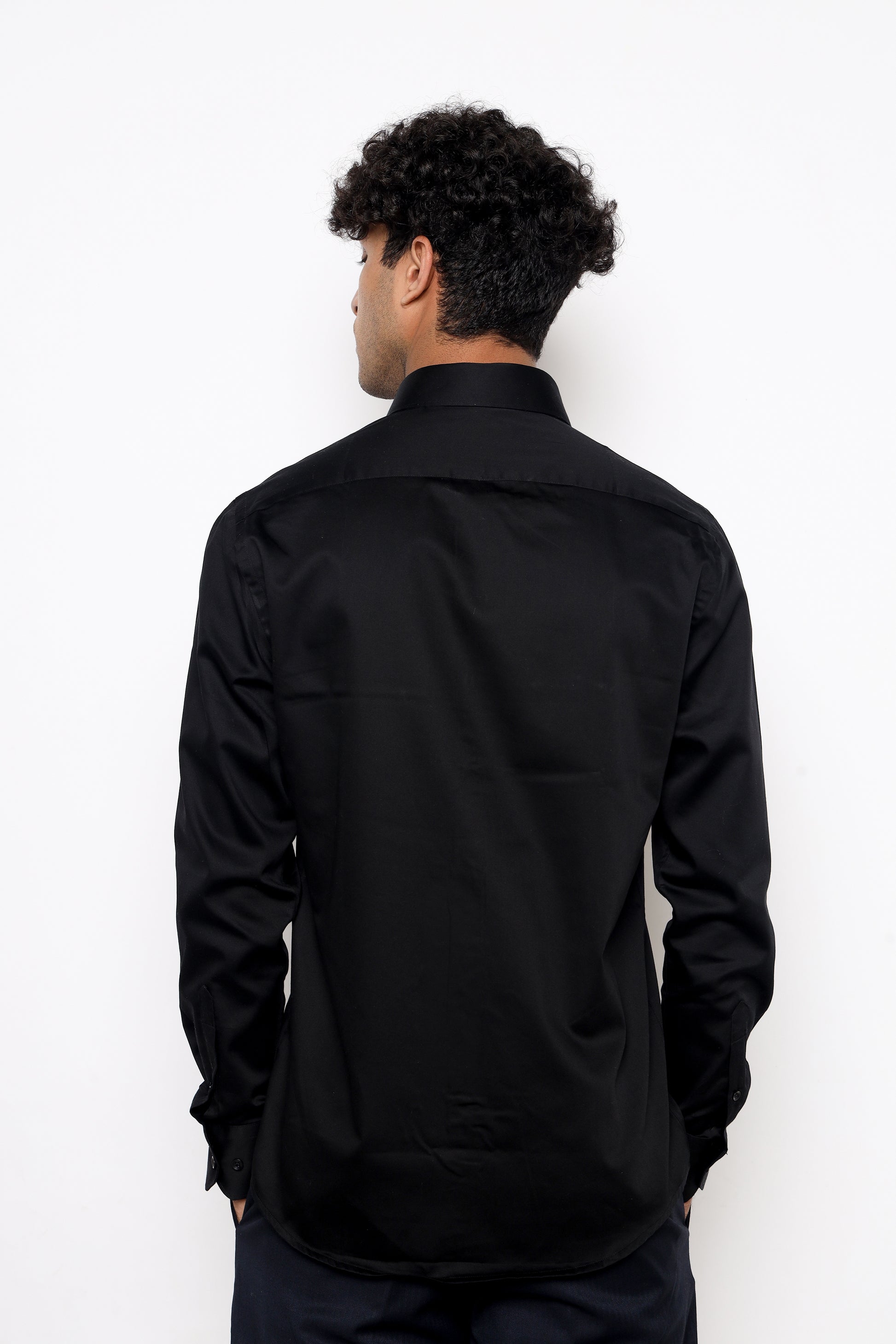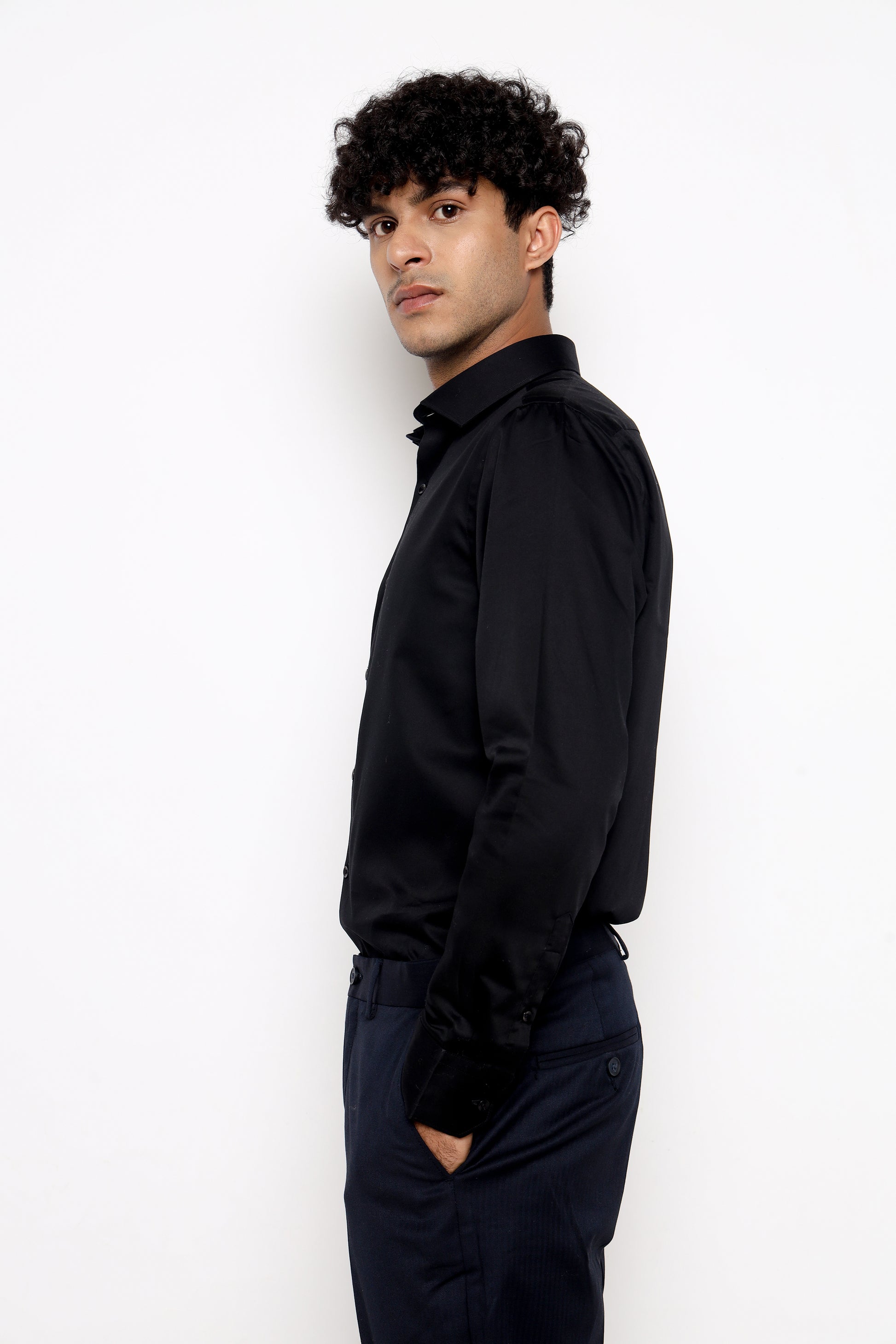 THE MIDNIGHT BLACK GIZA SATIN SHIRT